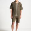 This Boxy Shirt is a versatile addition to any wardrobe. The concealed frontal zip provides a sleek and modern look, while the crease detail adds a refined touch. The neutral tone and classic collar make it easy to dress up or down, perfect for any occasion.