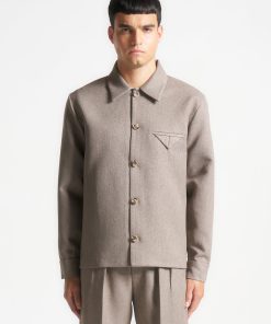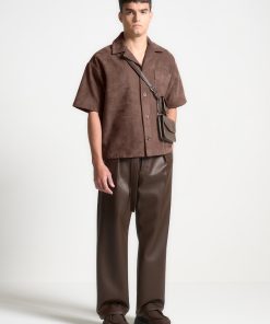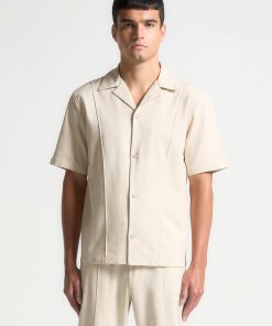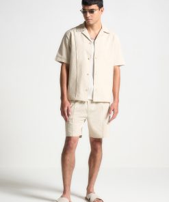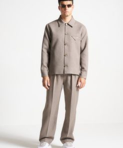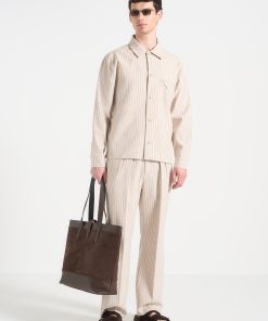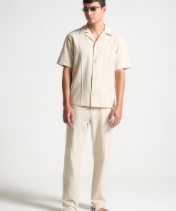 Manière De Voir Men’s Louis – Relaxed Fit Textured Belted Tailored Trousers – Stone | Stone