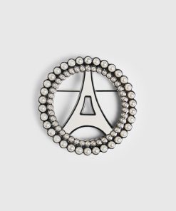 Manière De Voir Men’s Pearl Embellished Eiffel Brooch – Silver