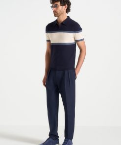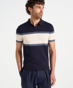 Manière De Voir Men’s Colour Block Knit Revere Polo Top – Navy/steel Blue | Navy & Steel Blue