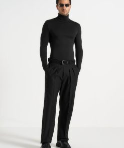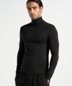 Manière De Voir Men’s Core Collection Blaise – Long Sleeve Roll Neck Top – Black | Black