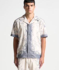 Manière De Voir Men’s Best Sellers Marc – Signature Baroque Resort Shirt – Cream/grey | Cream