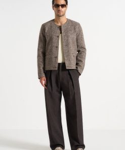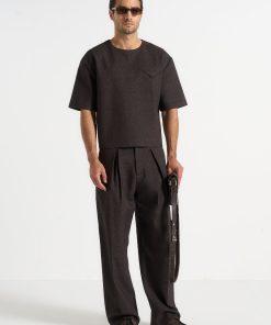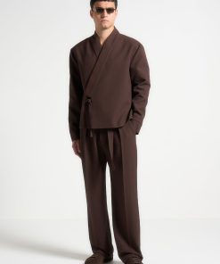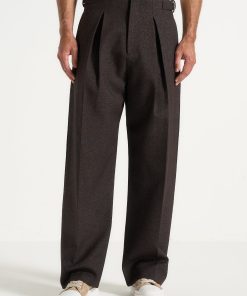 Manière De Voir Men’s Best Sellers Lior – Box Pleat Hatched Wide Leg Trousers – Dark Brown | Brown
