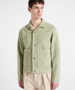Manière De Voir Men’s Best Sellers Michel – Suede Jacket With Revere Collar – Sage | Sage