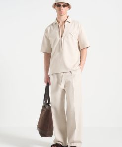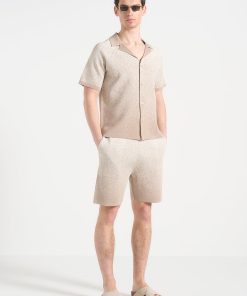 Manière De Voir Men’s Best Sellers Norbert – Open Collar Textured Drawstring Shirt – Cream