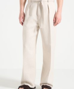 Manière De Voir Men’s Best Sellers Louis – Relaxed Fit Belted Tailored Trousers – Beige | Beige