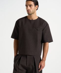 Manière De Voir Men’s Best Sellers Léon – Boxy Cropped Hatched T-shirt – Dark Brown | Brown