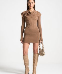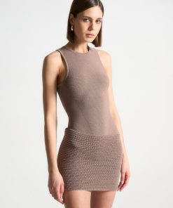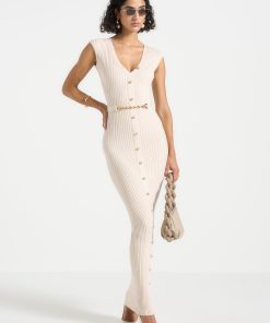 Manière De Voir Women’s Daphne – Rib Knit Contrast Midaxi Dress – Brown/cream | Brown & Cream