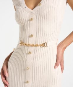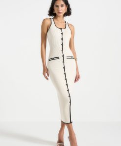 Manière De Voir Women’s Daphne – Rib Knit Contrast Midaxi Dress – Cream/black | Cream & Black