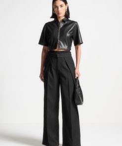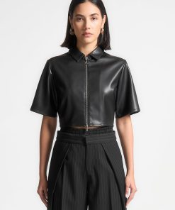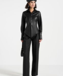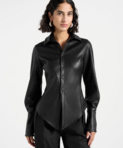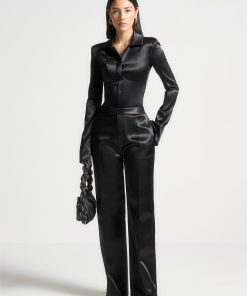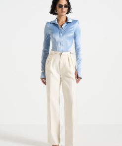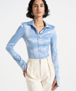 Manière De Voir Women’s Louise – Wide Shoulder Satin Shirt Bodysuit – Pale Blue | Pale Blue