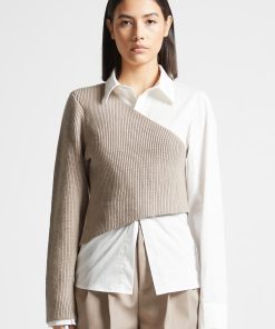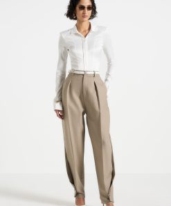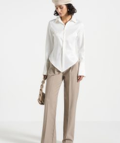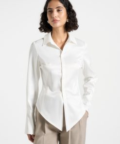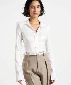 Manière De Voir Women’s Louise – Wide Shoulder Satin Shirt Bodysuit – Off White | Off White