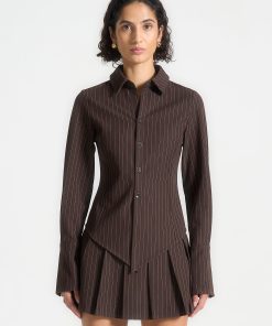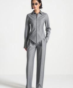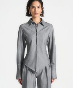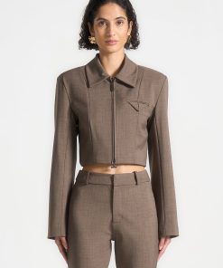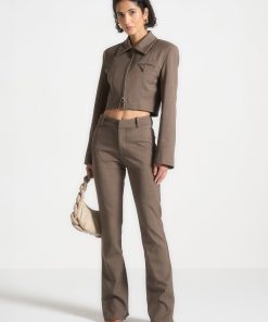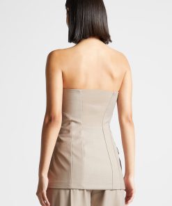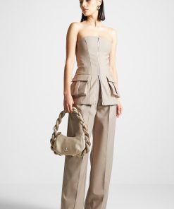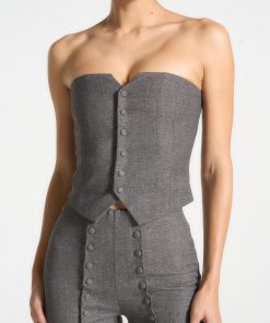 Manière De Voir Women’s Lise – Cropped Tailored Blazer & Button Detail Bandeau – Dark Grey | Grey