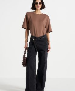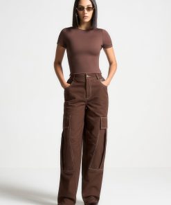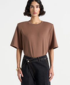 Manière De Voir Women’s Core Collection Mia – Wide Shoulder Bodysuit T-shirt – Brown | Brown