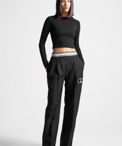 Manière De Voir Women’s Core Collection Lola – High Leg Long Sleeve Bodysuit – Black | Black