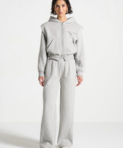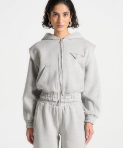 Manière De Voir Women’s Core Collection Louna – Wide Shoulder Zip Through Hoodie – Grey | Grey