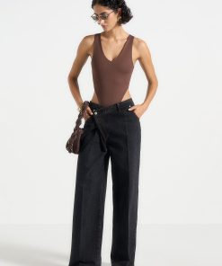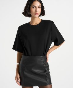Manière De Voir Women’s Core Collection Mia – Wide Shoulder Bodysuit T-shirt – Black | Black