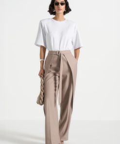 Manière De Voir Women’s Core Collection Léna – Double Layer Short Sleeve T-shirt – Brown | Brown