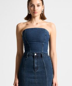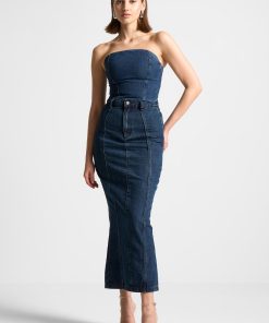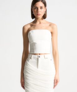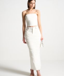 Manière De Voir Women’s Denim Effect Tacked Fit And Flare Jeans – White/blue | White & Blue
