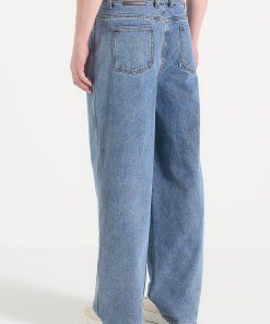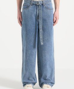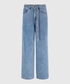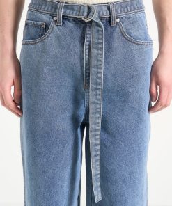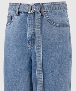 Pushing denim into a sculptural direction, the Wide Leg Belted Jeans feature an exaggerated straight cut balanced by a fully integrated wraparound belt. The extended denim belt loops through the waistband and hangs past the hem for an intentional drape, allowing for custom cinching and visual contrast. Finished in a washed vintage blue, they deliver presence and edge in equal measure.