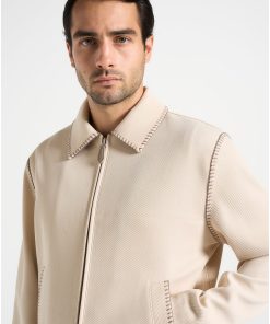A sleek evolution of structure and detail, this piece is defined by its regular fit and refined silhouette. Contrasting whipstitch seams add edge, while a two-way zip and invisible pockets offer clean functionality. Finished with satin lining for added comfort.