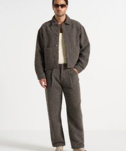 This boucle denim jeans combines refined texture with a relaxed silhouette for a smooth, clean drape. Front pleats add tailored volume, while darted back detailing enhances fit and shape. Finished with belt loops and a concealed fastening, they offer a polished look with added texture perfect for everyday wear.