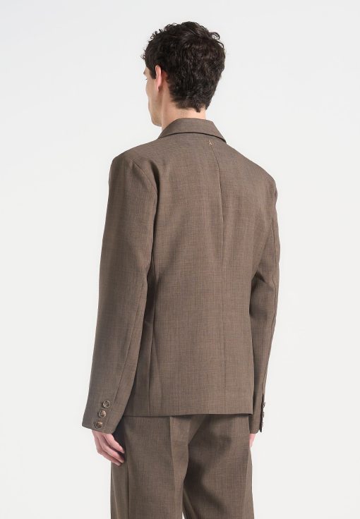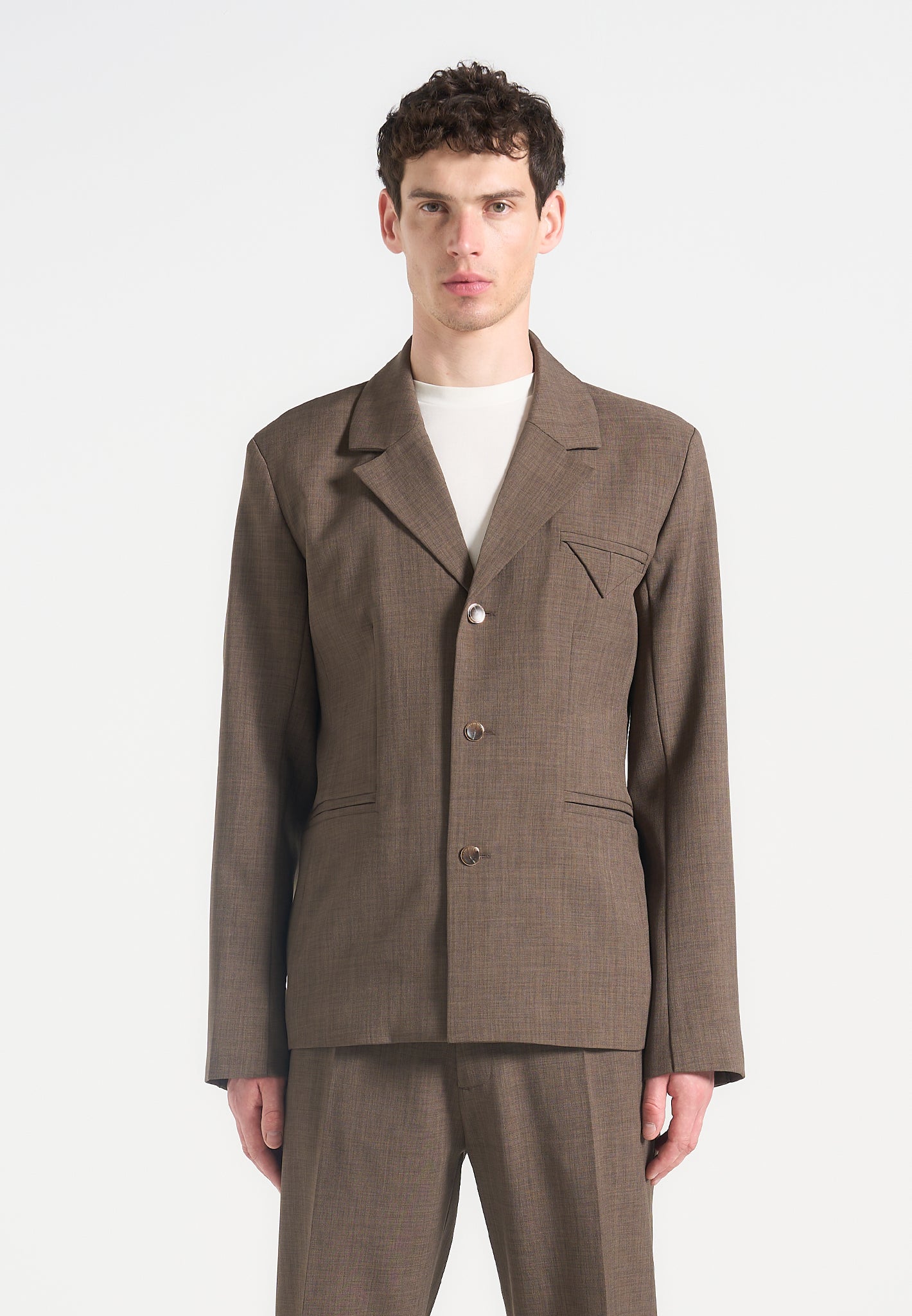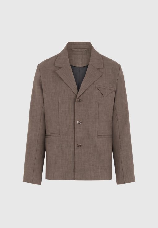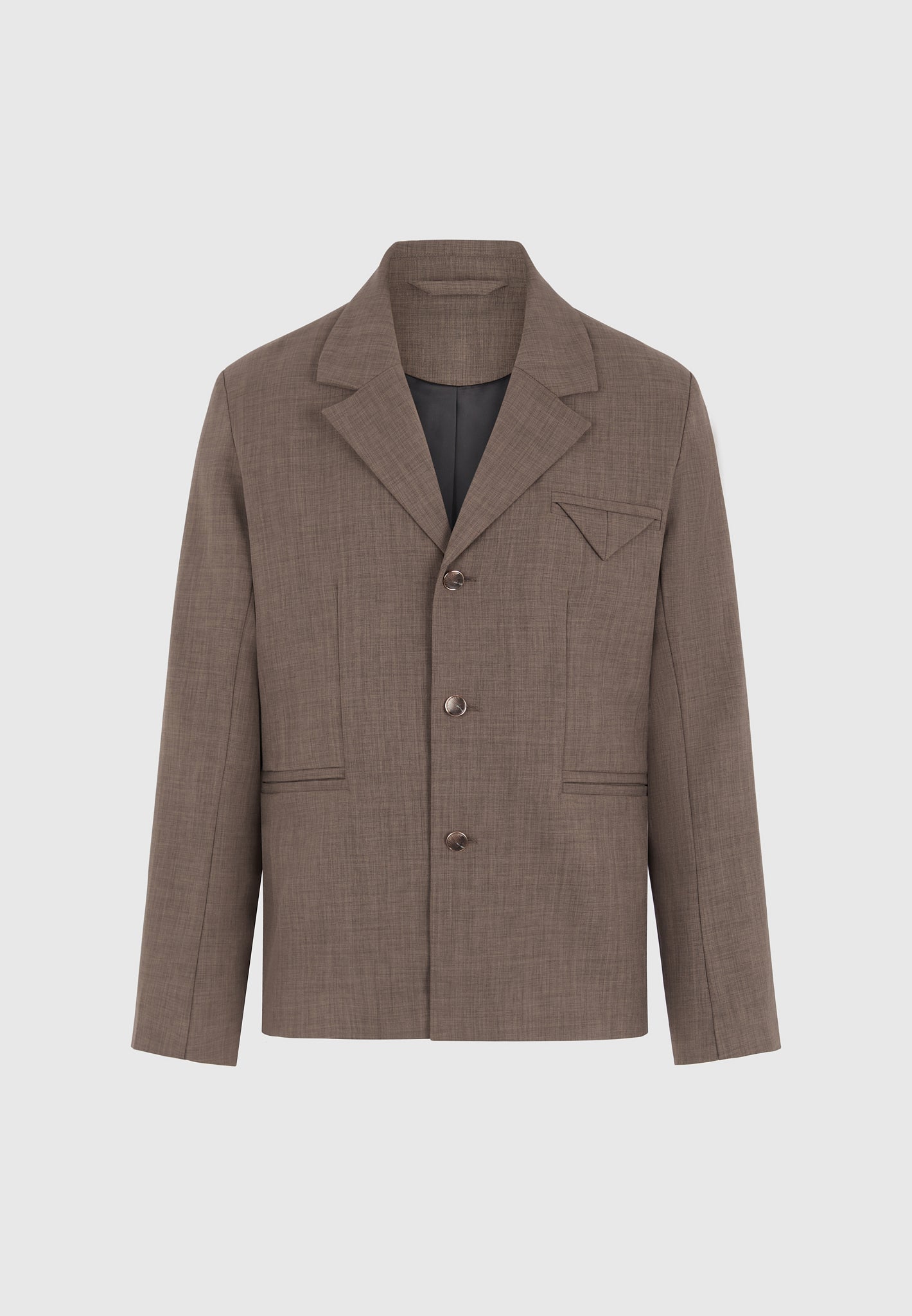 Classic structure with modern precision, the Single Breasted Hatched Tailored Suit Jacket brings sharp tailoring to the forefront with a clean-cut silhouette and subtle hatch-textured weave. Defined by its angular flap chest pocket and double welted front, it balances traditional suiting cues with architectural accents.