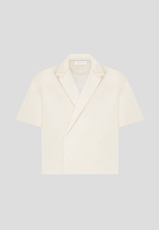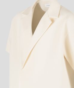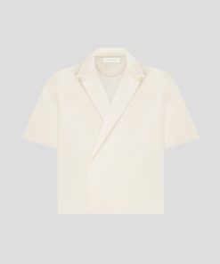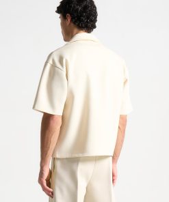 Meticulously designed with an open collar and relaxed fit, our Boxy Twill Double Breasted Shirt in Cream embodies timeless style. The short sleeve silhouette adds a contemporary touch, ensuring its versatility in any wardrobe. Stay both comfortable and polished throughout the day.