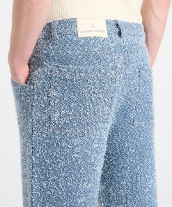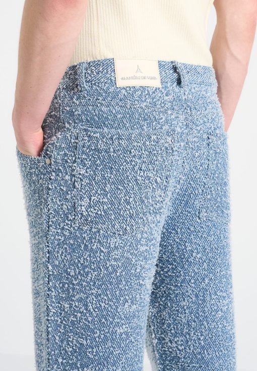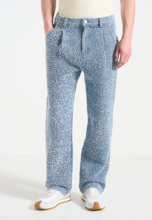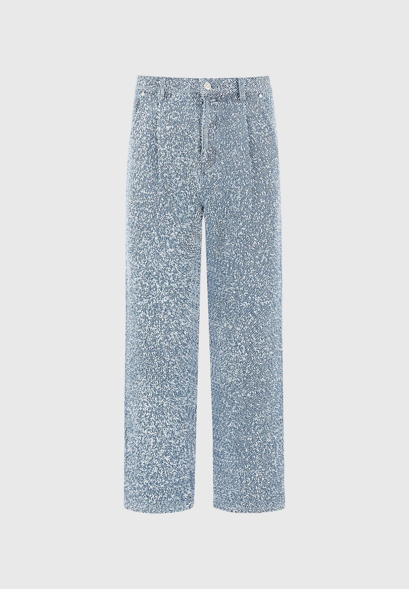 Reimagining denim through a tailored lens, the Pleated Jeans introduce front-pleat construction to a textured, bouclé denim for an unexpected fusion of structure and softness. The relaxed leg and tailored waistband elevate the silhouette, while the tactile surface adds dimension to everyday styling.
