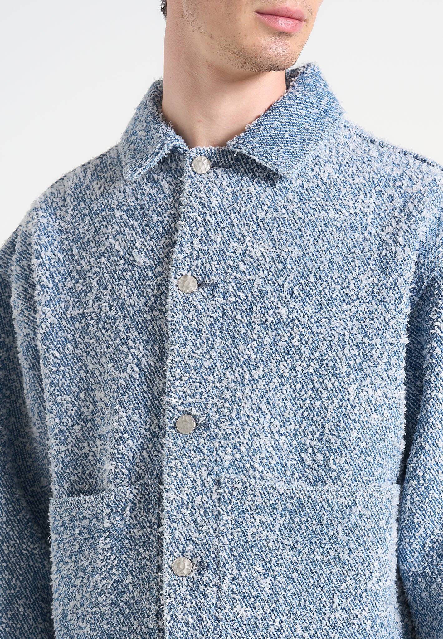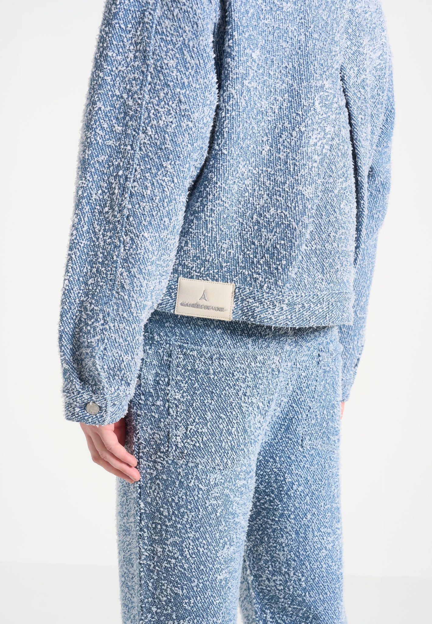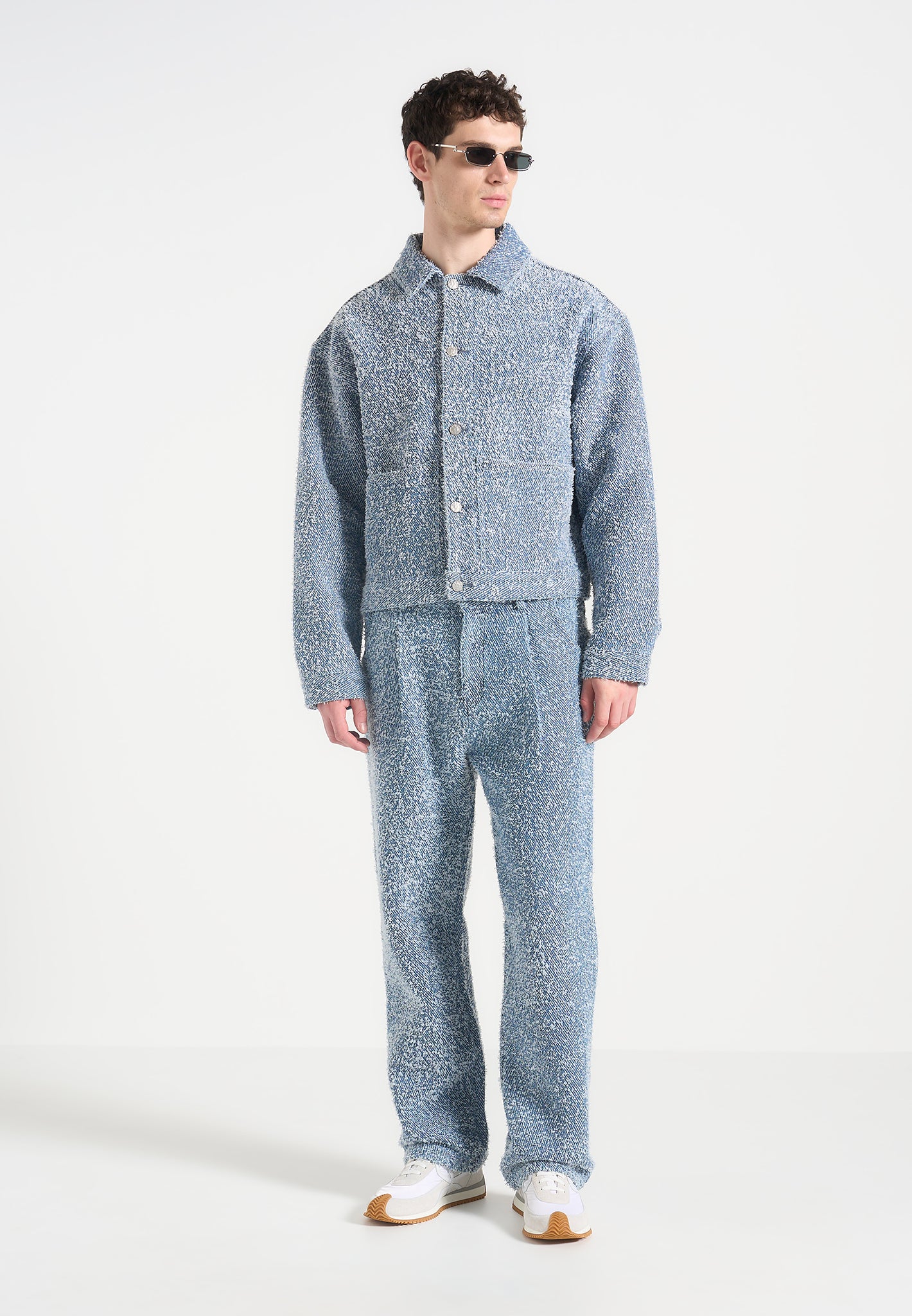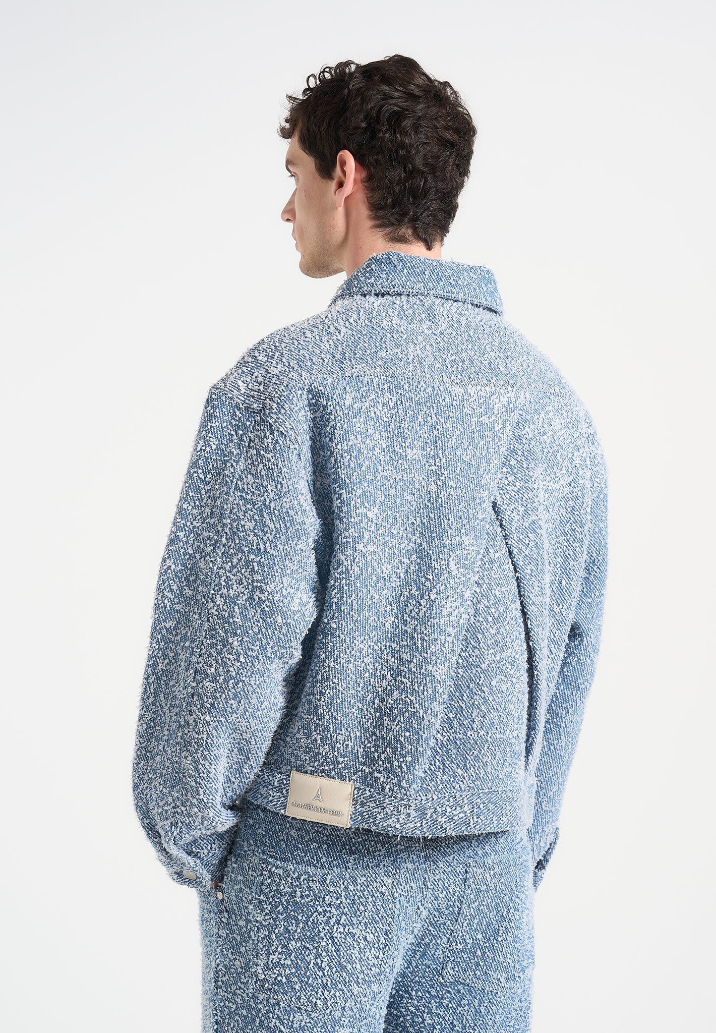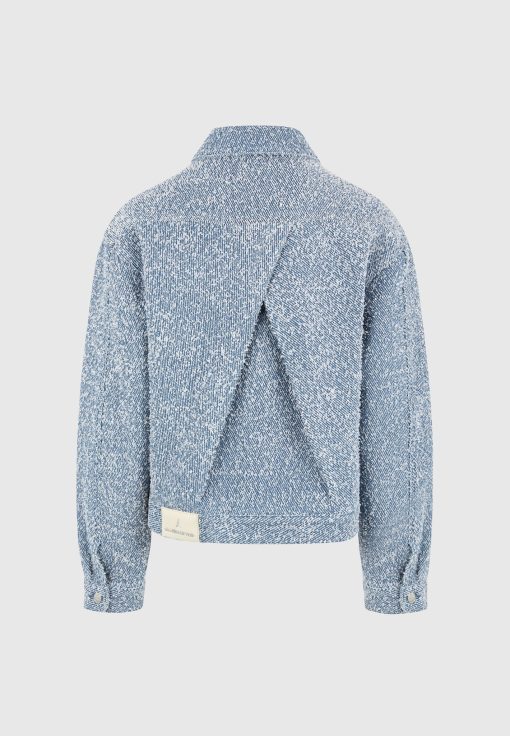 Texture leads the conversation in the Bouclé Jacket with Back Pleat, a cropped, sculptural layer designed to balance form with feel. Crafted from richly looped bouclé fabric, its soft hand is offset by tailored construction, including a structured collar and a deep back pleat for added movement and volume through the body.