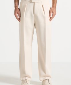 Manière De Voir Men’s Best Sellers Dorian – Relaxed Fit Twill Pleated Tailored Trousers – Cream | Cream