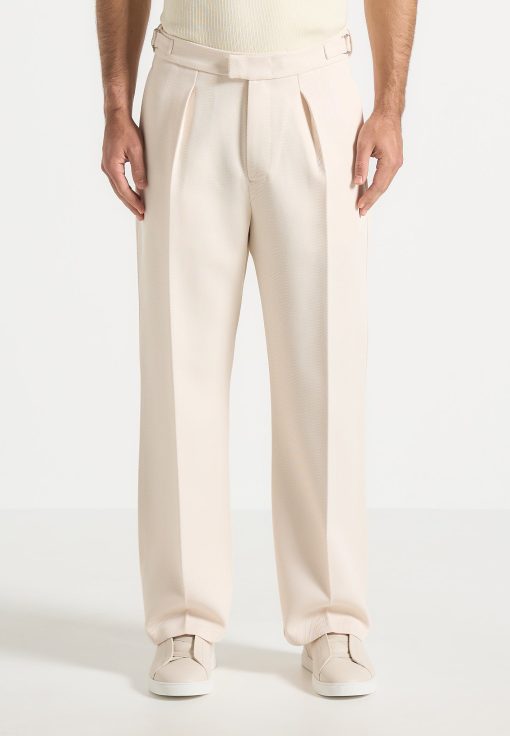 Manière De Voir Men’s Best Sellers Dorian – Relaxed Fit Twill Pleated Tailored Trousers – Cream | Cream