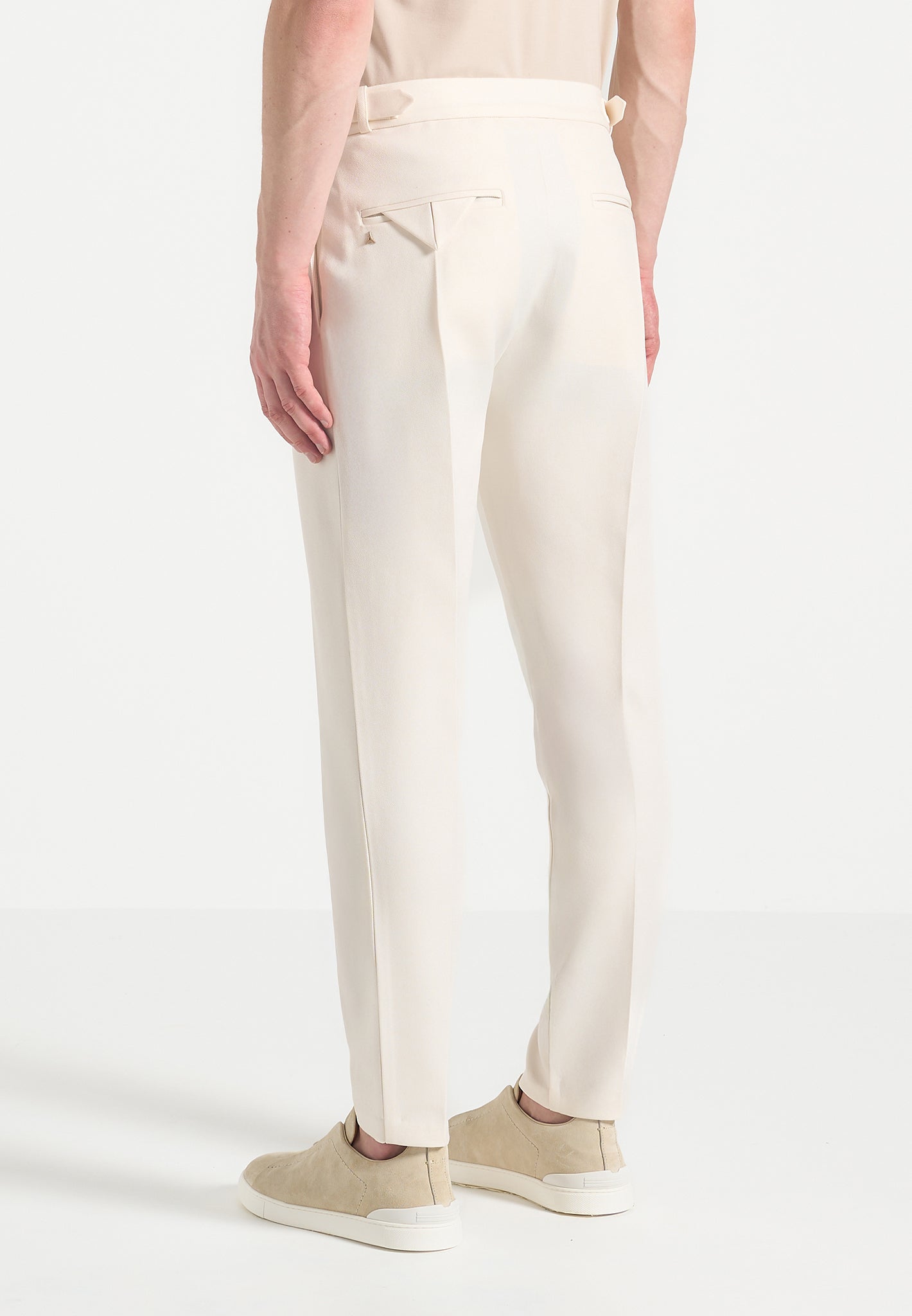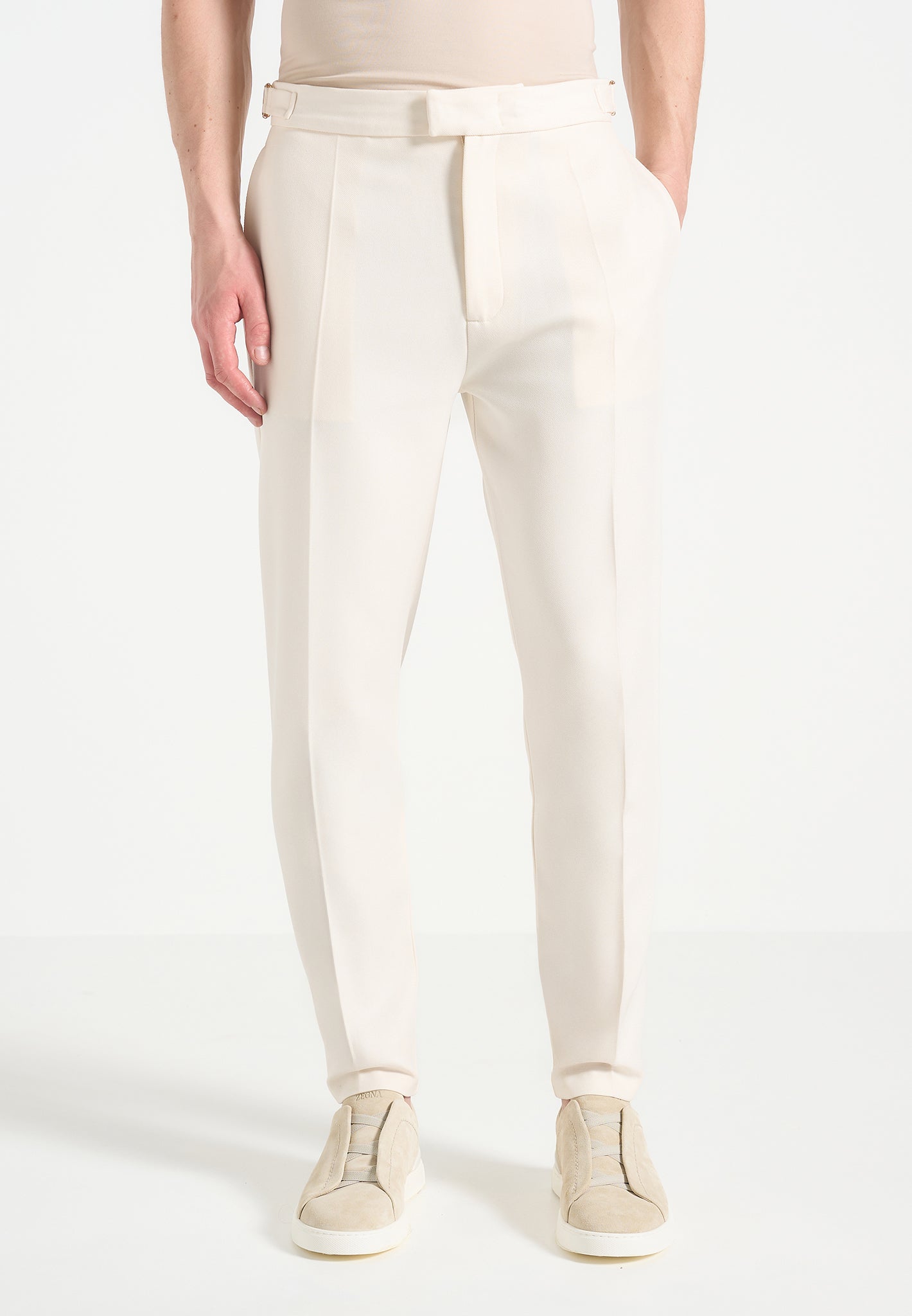 The Slim Fit Tailored Trousers are cut for precision and built for control. Designed with integrated side adjusters, the waistband offers a custom fit without disrupting the clean front profile. The slim silhouette tapers neatly through the leg, finished with pressed creases for a sharp, structured look.