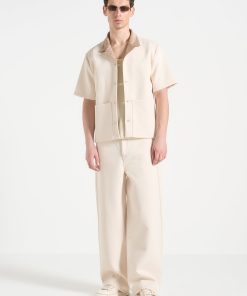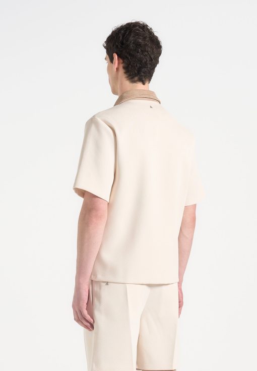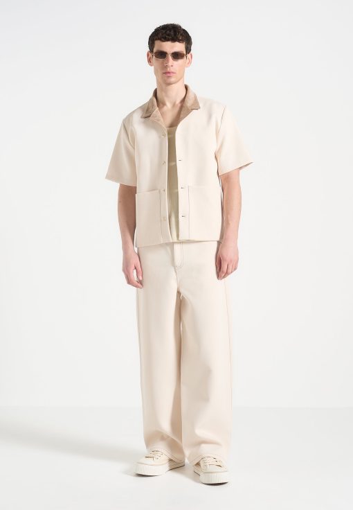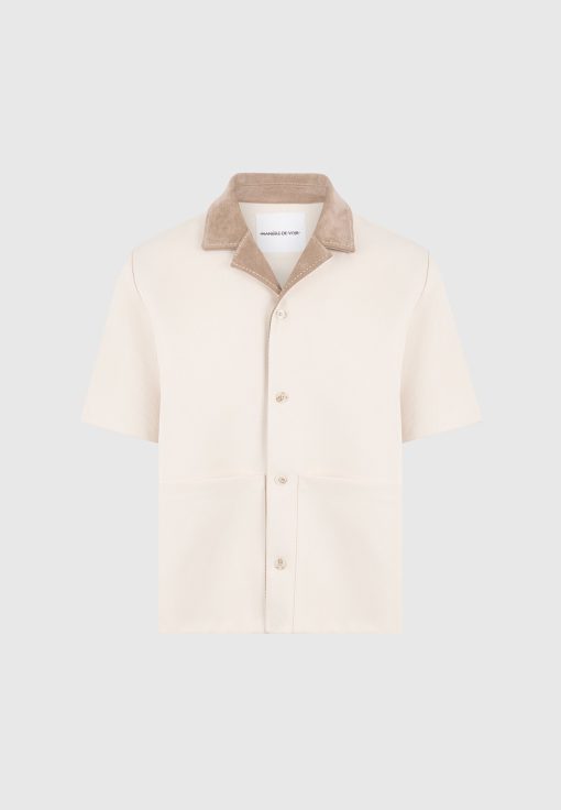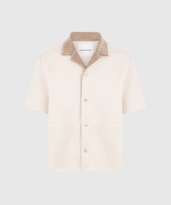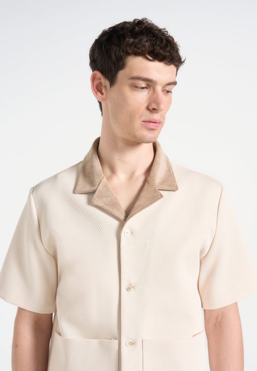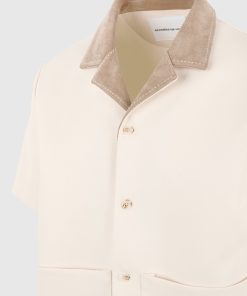 Balancing workwear influence with elevated detailing, the Twill Shirt With Contrast Suede Revere Collar is crafted from a structured twill weave and anchored by a soft-touch suede collar. The boxy cut is sharpened by clean lines and tonal buttons, while the revere collar adds a refined edge in a contrasting texture.
