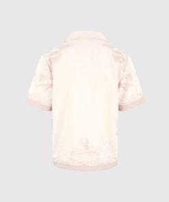 Art meets escapism in the Signature Baroque Resort Shirt, where ornamental motifs and classical detailing define a refined vacation silhouette. Featuring an all-over baroque illustration and contrast paneling through the placket and hem, the shirt blends grand visuals with laid-back tailoring. The relaxed fit and open revere collar make it ideal for elevated summer styling.