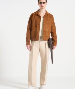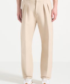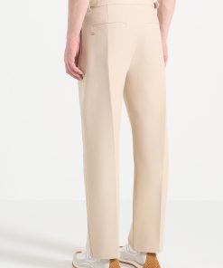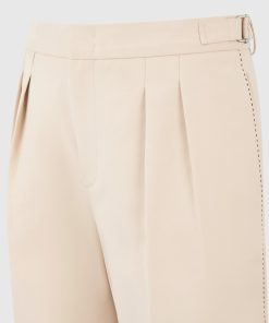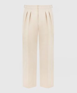 A refined take on traditional tailoring, the Twin Pleat Chino Trousers With Stitch Detail fuse classic structure with technical precision. Defined by sculptural twin front pleats and contrast topstitching along the leg seams, these trousers are finished with integrated side adjusters that deliver a custom fit without compromising the silhouette’s clean integrity.