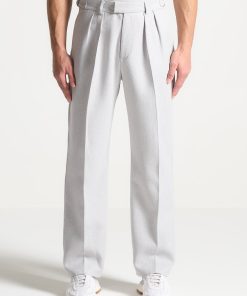 Elevate your wardrobe with our Textured Twin Pleat Tailored Trousers in Grey, offering a relaxed fit for enduring comfort throughout the day. With side slip pockets and a pleat to crease detail, these trousers effortlessly blend practicality with style. Perfect for both smart casual and formal occasions, these versatile trousers are a must-have addition to your collection.
