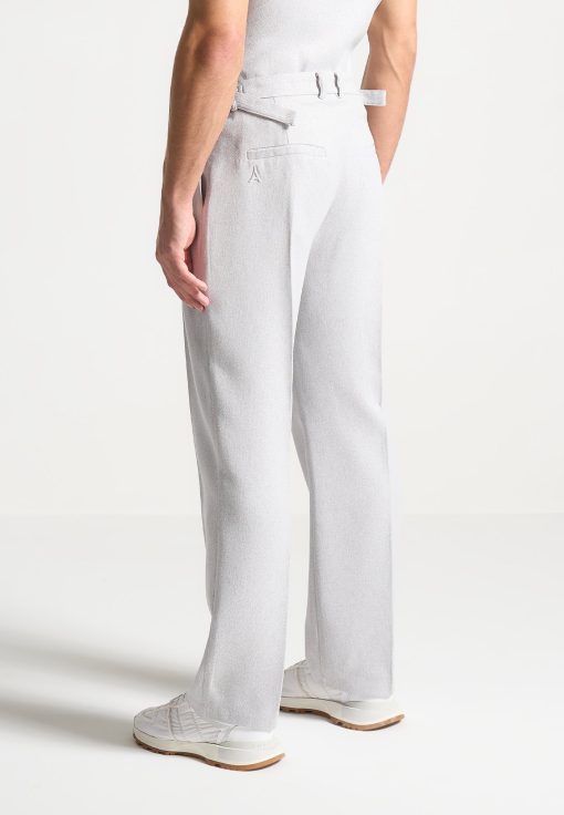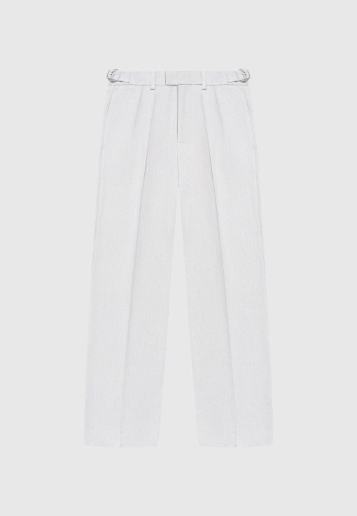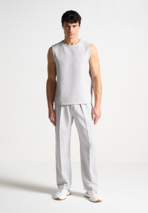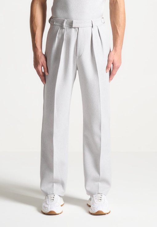 Elevate your wardrobe with our Textured Twin Pleat Tailored Trousers in Grey, offering a relaxed fit for enduring comfort throughout the day. With side slip pockets and a pleat to crease detail, these trousers effortlessly blend practicality with style. Perfect for both smart casual and formal occasions, these versatile trousers are a must-have addition to your collection.