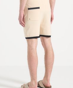 The Contrast Detail Knit Shorts deliver a modern athletic profile with elevated textural appeal. Crafted from a breathable knit with a soft-yet-structured feel, these shorts feature contrast hem and pocket detailing for sharp tonal interplay. Designed with a clean waistband and back patch pocket, they blend sport and sophistication effortlessly.