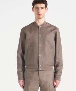 Manière De Voir Men’s Best Sellers Savin – Pinstripe Bomber Jacket – Taupe | Taupe
