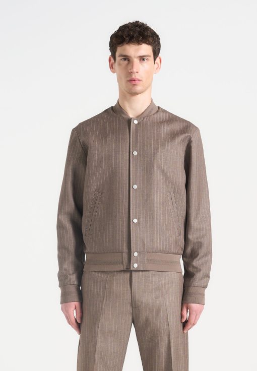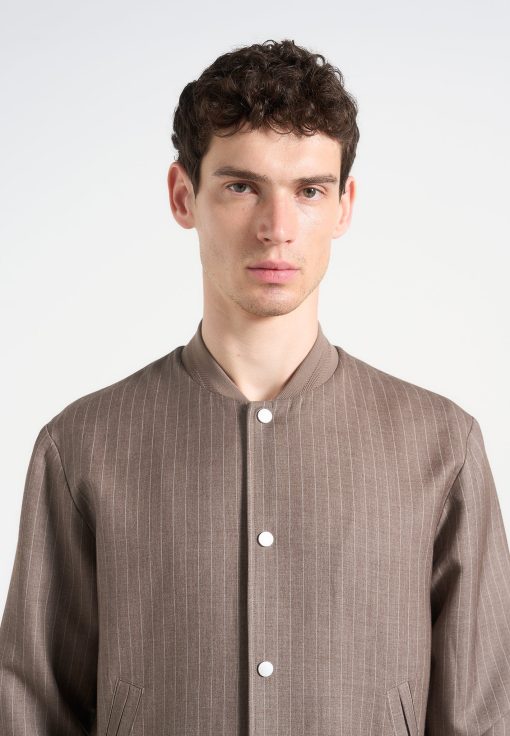 Manière De Voir Men’s Best Sellers Savin – Pinstripe Bomber Jacket – Taupe | Taupe