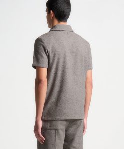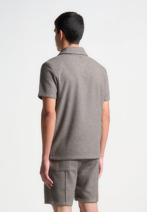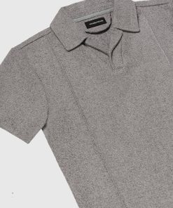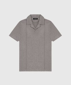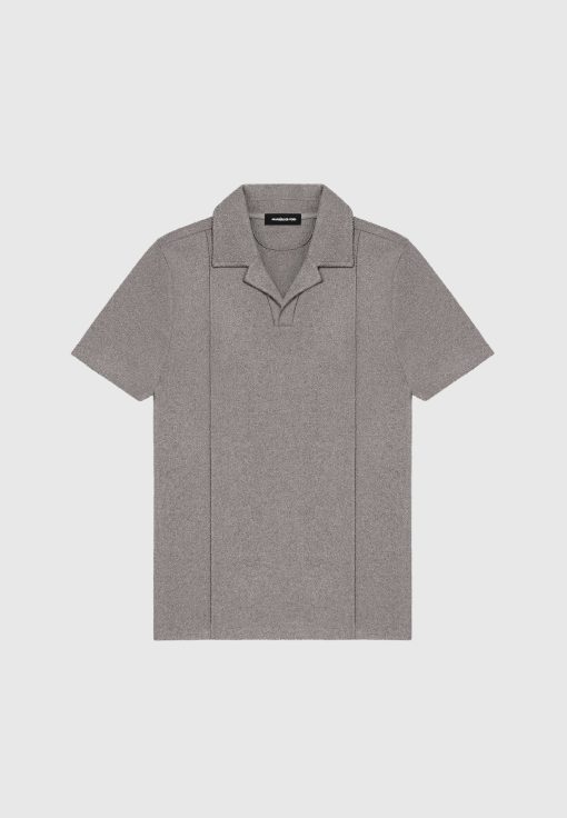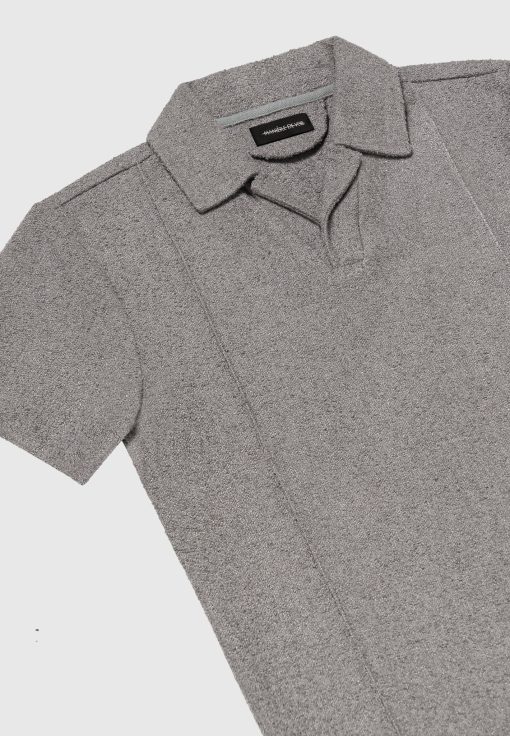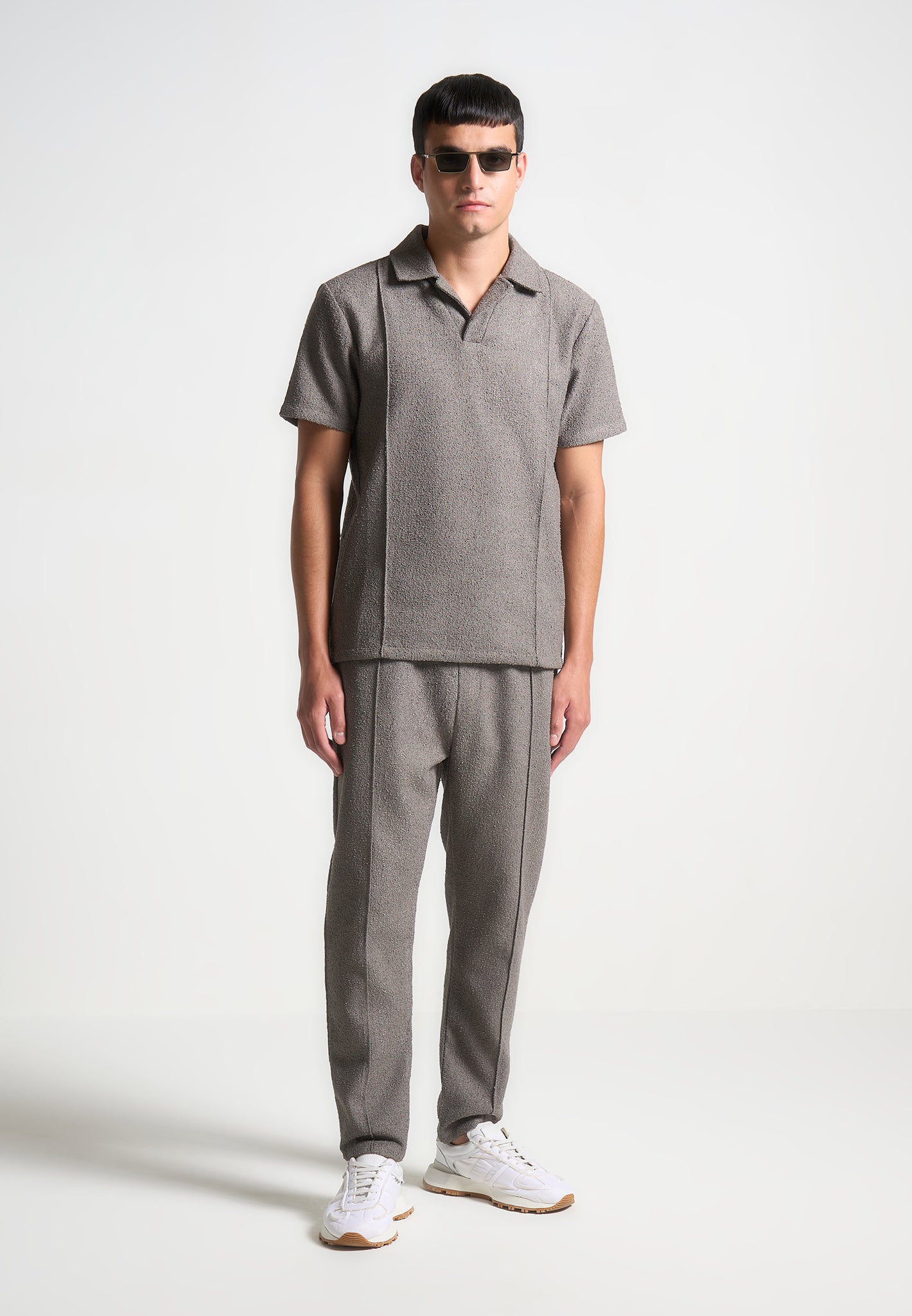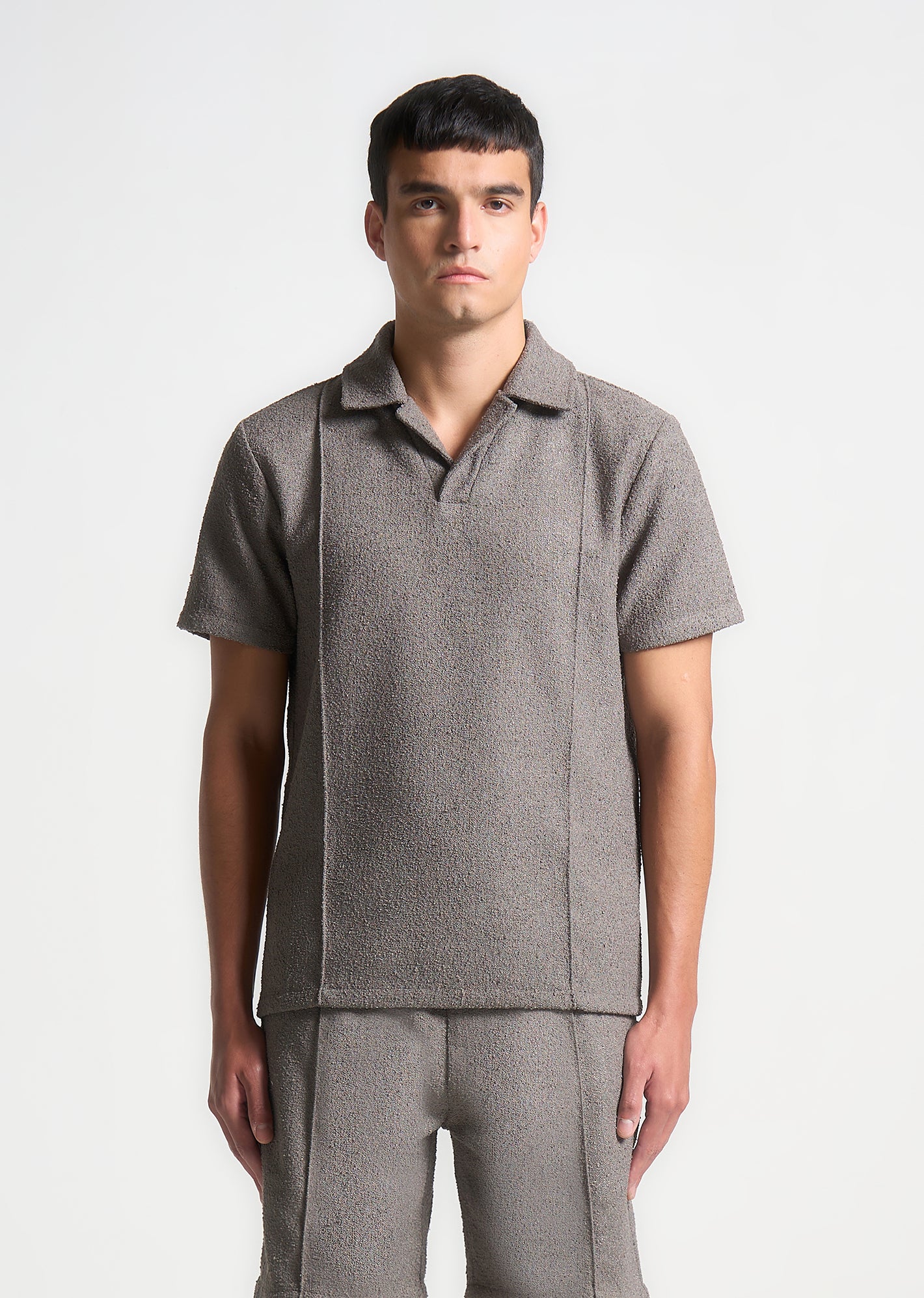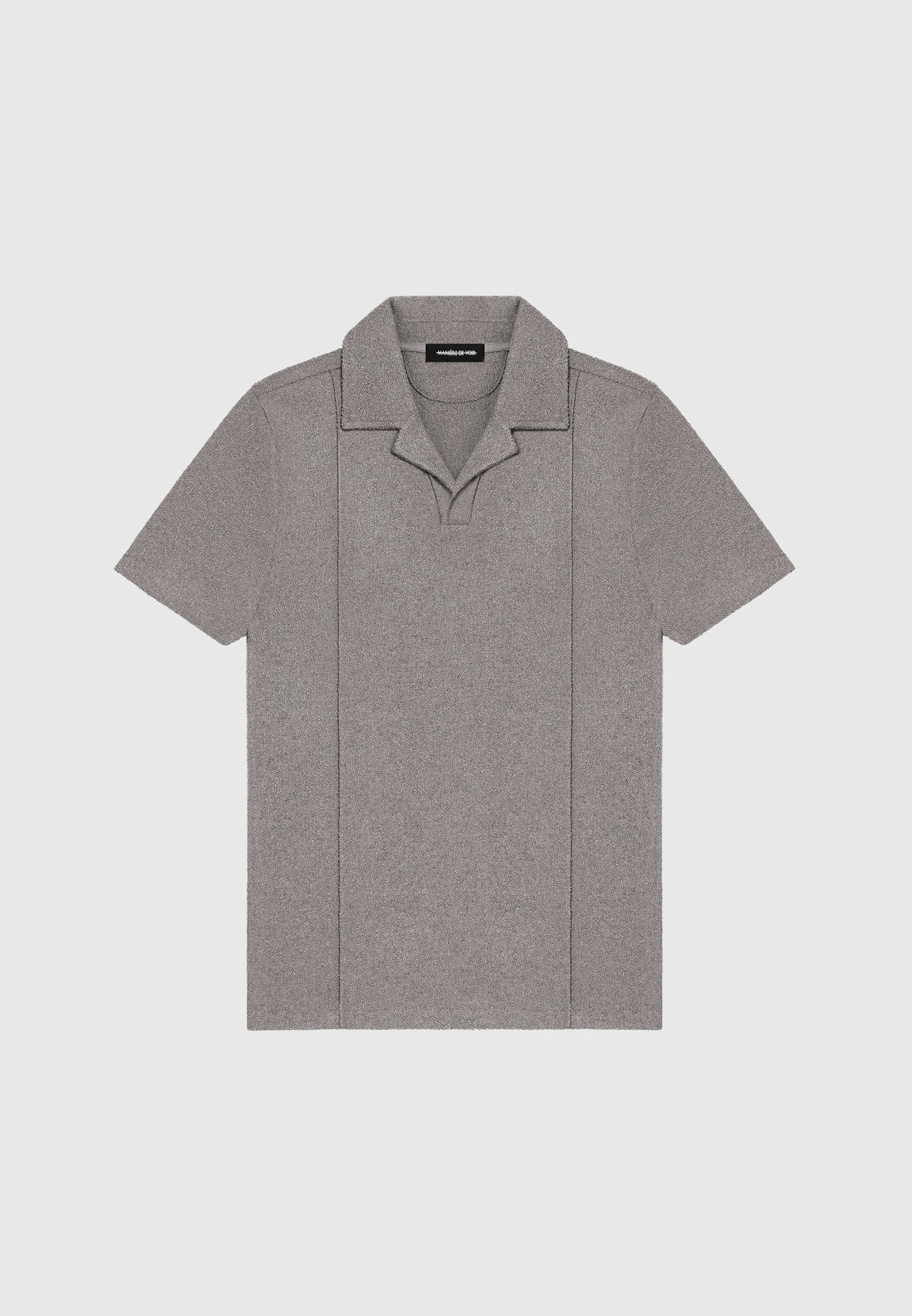 Elevate your wardrobe with our Boucle Revere Pintuck Polo Shirt in Grey, boasting a luxurious textured fabric with a hidden popper under the Revere collar for a tailored fit. With its subtle pleat to crease detail and soft, comfortable feel, this polo effortlessly combines style and versatility for any casual or smart casual occasion.