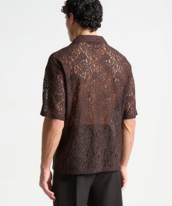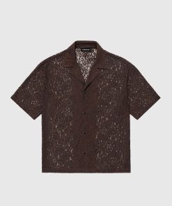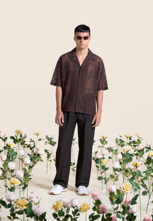 Meticulously crafted with delicate lace, the Boxy Lace Revere Shirt seamlessly merges breathability with sophistication. The Revere collar and boxy fit emanates masculinity and refinement, while the subtle gold-rim button detailing adds a touch of understated luxury. Versatile for any occasion, this shirt is an essential wardrobe staple.