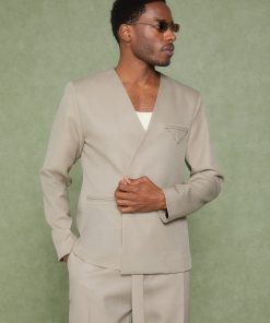 Refine your look with the Collarless Double-Breasted Minimal Blazer, a modern approach to refined tailoring that offers a sleek, structured silhouette with a contemporary edge. The open v-neck collar enhances its minimalist appeal, while the discreet button fastening ensures a sharp, polished look.