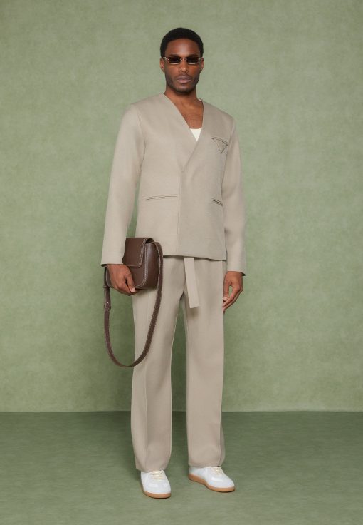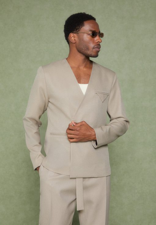 Refine your look with the Collarless Double-Breasted Minimal Blazer, a modern approach to refined tailoring that offers a sleek, structured silhouette with a contemporary edge. The open v-neck collar enhances its minimalist appeal, while the discreet button fastening ensures a sharp, polished look.