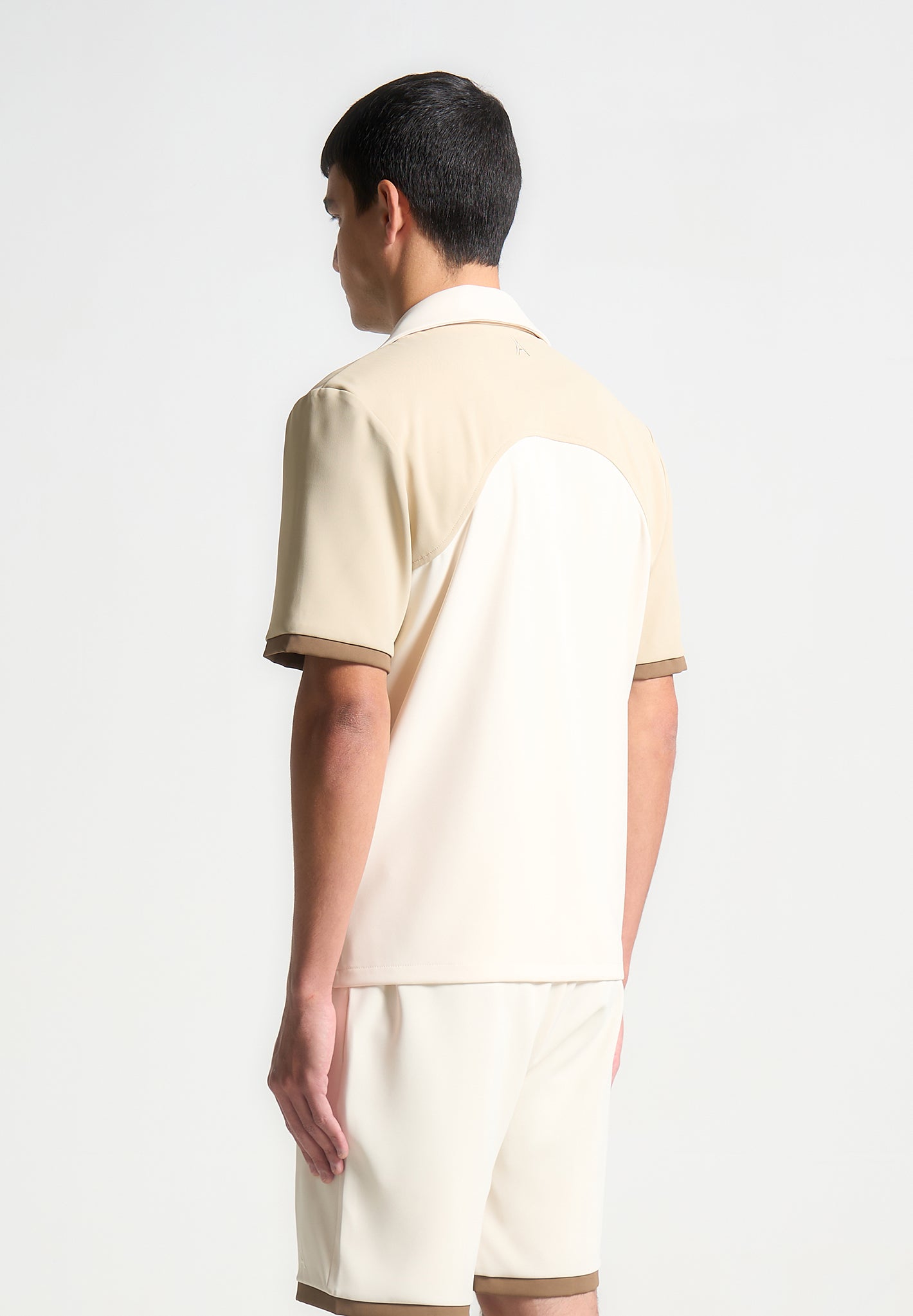 Experience ultimate comfort and style with our Colour Block Raglan Revere Shirt. Featuring a revere collar and relaxed fit, it offers effortless refinement. The contrasting fabric adds a unique touch, making it a versatile addition to any wardrobe. Perfect for casual outings or more formal, smart-casual occasions, this shirt promises comfort and individuality in every wear.