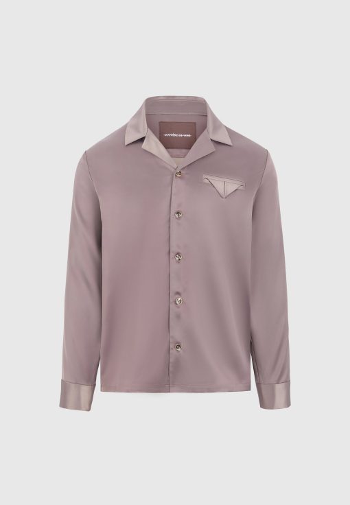 The Satin Overshirt delivers a refined, high-gloss aesthetic with fluid drape and tailored structure. Crafted from lustrous satin with a weighty hand feel, it features a relaxed cut and open revere collar that channels understated luxury. The tonal button-down front and angular chest pocket add a clean, contemporary edge to this elevated layering piece.