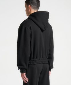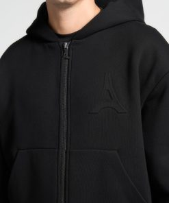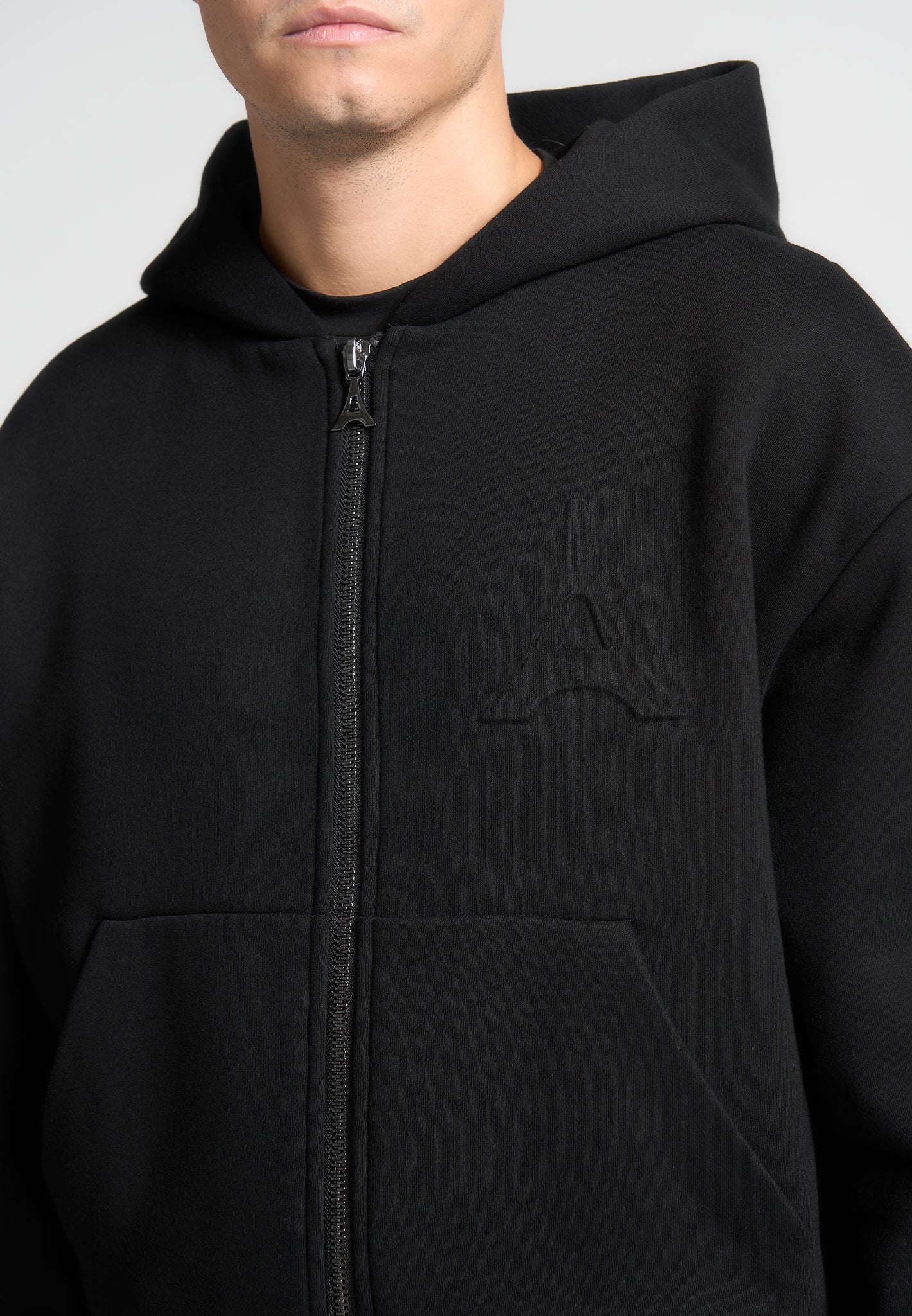 Manière De Voir Men’s Core Collection Kevin – Embossed Zip Hoodie – Black | Black