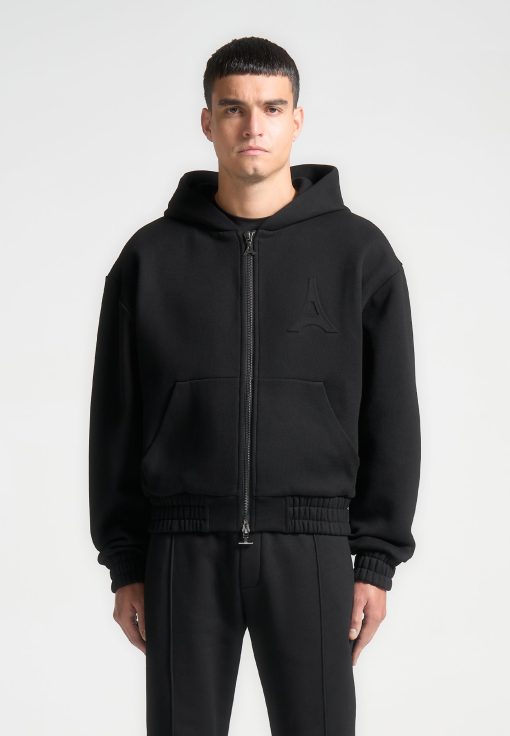 Manière De Voir Men’s Core Collection Kevin – Embossed Zip Hoodie – Black | Black