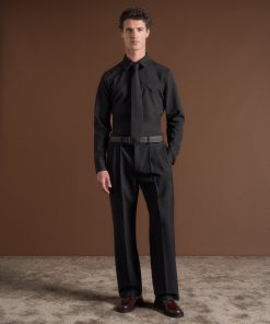 Manière De Voir Men’s Louis – Relaxed Fit Textured Belted Tailored Trousers – Stone | Stone