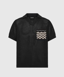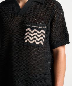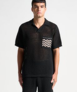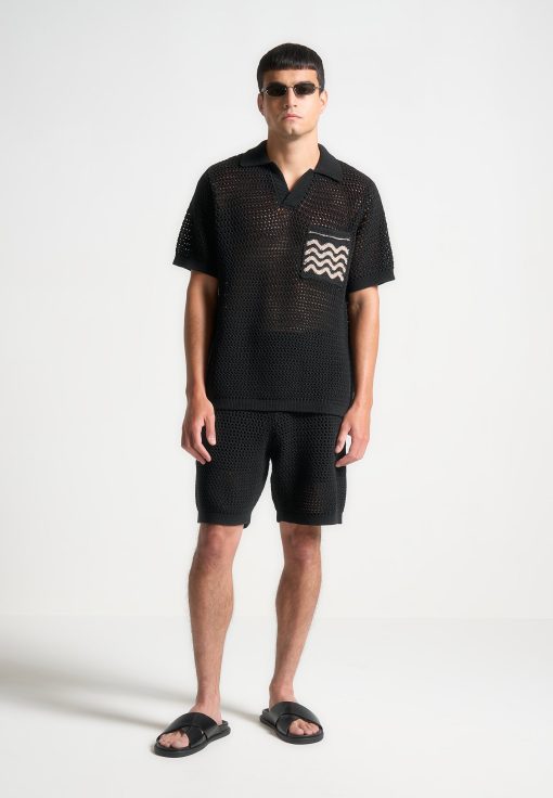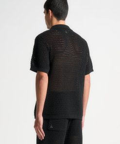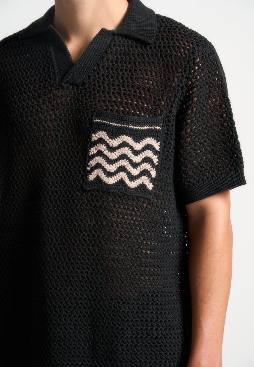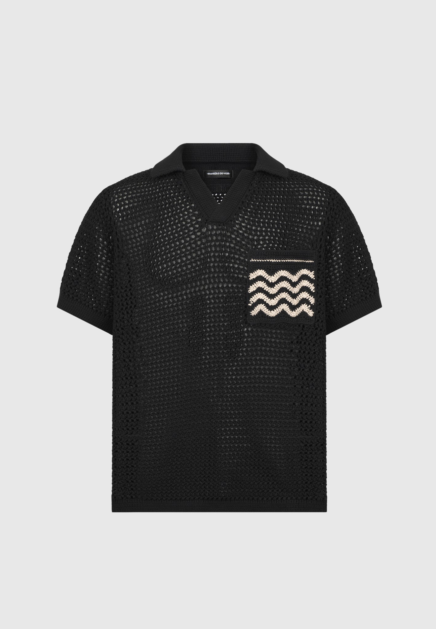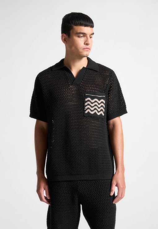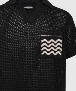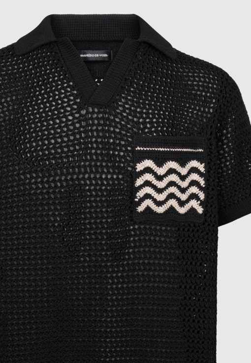 Manière De Voir Men’s Crochet Knit Polo Shirt – Black | Black